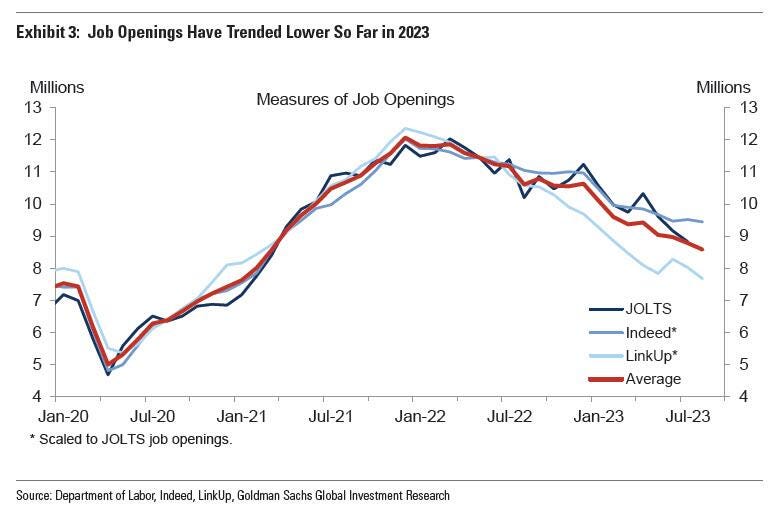 Bad data surprises on job openings and the downward revision in GDP were not seen as reasons to sell off. This indicates that the markets are currently more optimistic about the end of rate hikes and lower yields, rather than being concerned about a potential recession at this time.