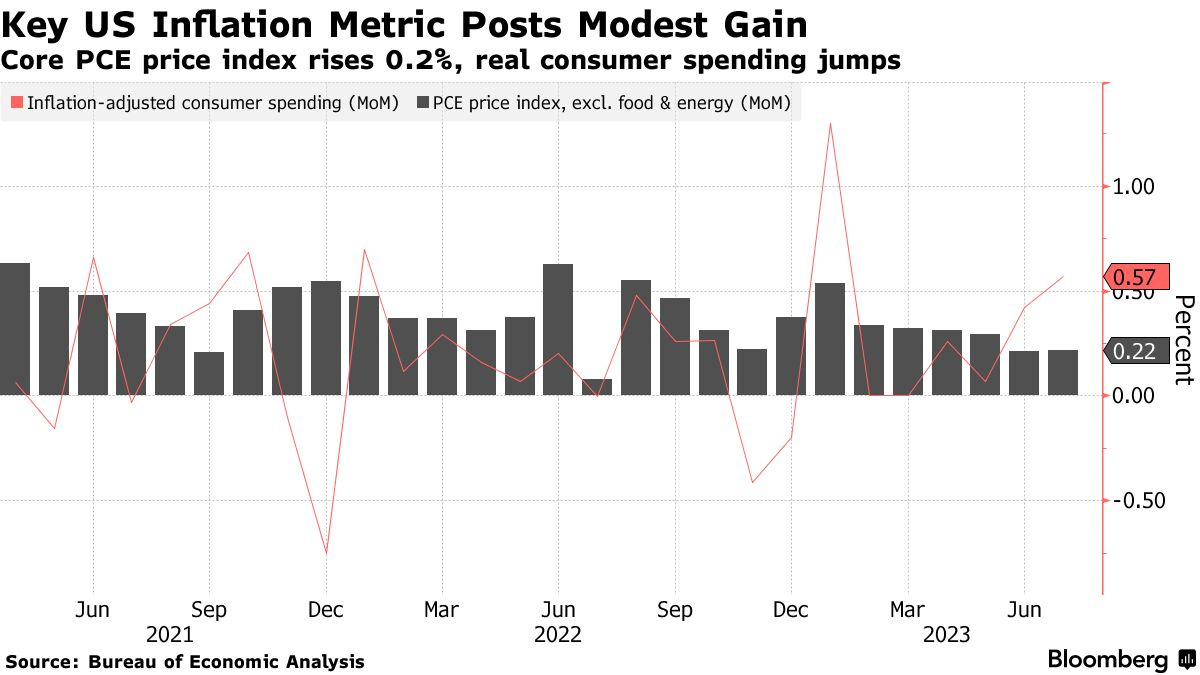 The Fed's preferred measure of inflation, PCE, posted back-to-back increases of 0.2%, in line with expectations and the lowest since late 2020. What kept the markets from rising further, however, was the so-called "supercore services" measure, a gauge that excludes housing and energy. This measure saw its most significant monthly increase since the start of this year. Consumer spending also recorded its strongest advance this year, which is potentially inflationary in the long run but will need confirmation in the coming weeks.