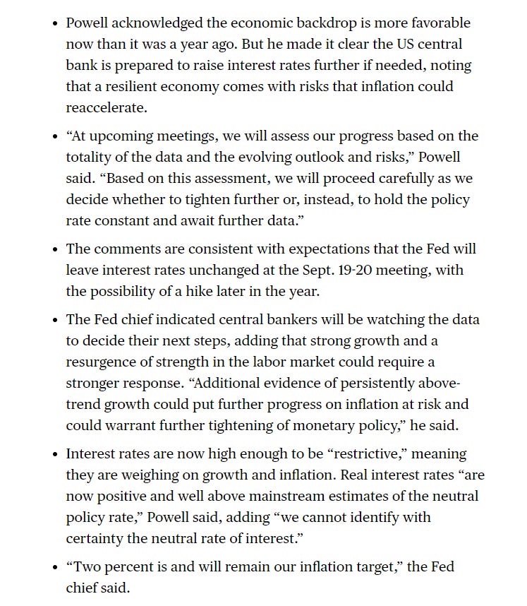 Jackson Hole last week was a nothingburger event, where all central bankers echoed the same mantra of “higher for longer“ and a commitment to implement more rate hikes if necessary.
