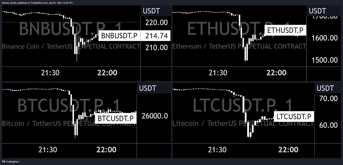 The $220 level has been acting as support for almost 2 months on the BNB/USDT pair. On August 17th we finally saw BNB plow through this level, triggering a market wide sell off. The correlation between BNB and the rest of the altcoin market has always been apparent, but this event really showed how powerful this relationship is. The cross margin leverage from BNB positions, together with the Venus Exploiter liquidation price, caused a “nuke” event across the market, sending Bitcoin below $25000 for a brief period of time.