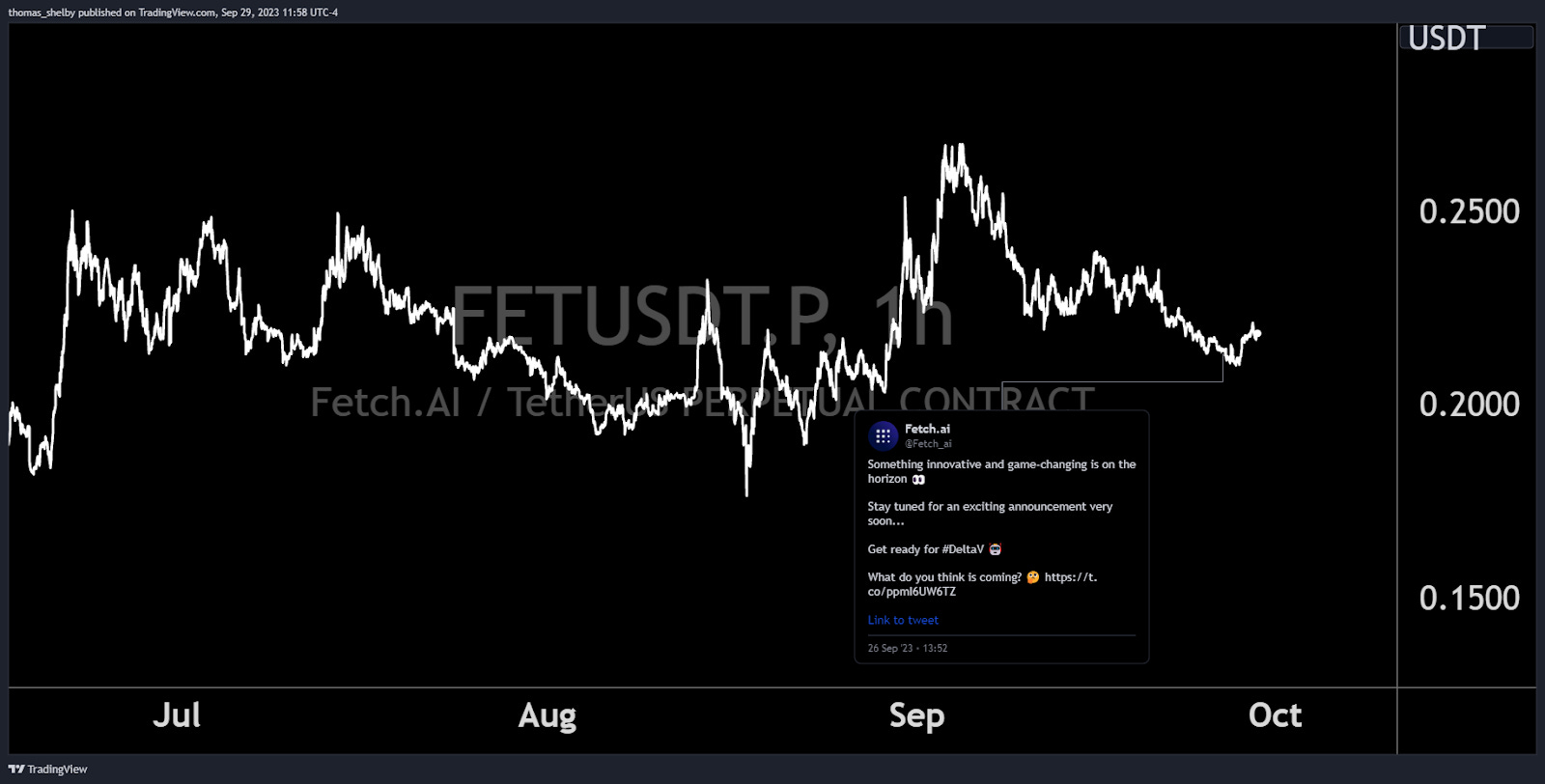 Tuesday afternoon, FET’s official twitter account, Fetch.ai tweeted the classic “announcement of an announcement”. The market did not react as we saw very little appetite for altcoin speculation earlier in the week, due to the stock market and crypto market overall heaviness. This pair is still worth keeping an eye on because if the market flips bullish, we can possibly see an inflow of buyers show up to front run the eventual official news. In this specific scenario, this can bring an opportunity for traders to sell the news once fetch.ai releases this