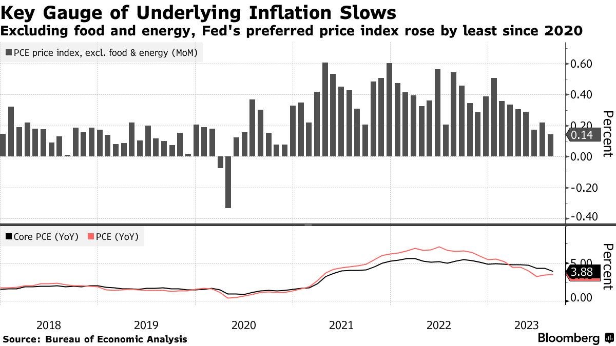 The core PCE component, a gauge closely watched by Fed officials, rose by 3.7%, marking the lowest pace of increase since early 2021.