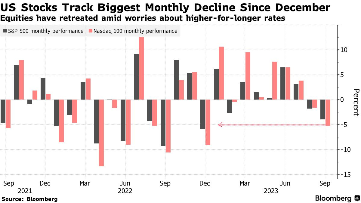 As described in our previous edition of the newsletter, bears took another shot at the markets post OpEx, and stocks began to re-price to the current macro environment. Equity funds experienced outflows of $16.9 billion in the week through September 20. On Thursday, The S&P 500 declined by 1.64%, breaking a streak of 103 days without a decline of more than 1.5%. Along with the tech-heavy Nasdaq 100, both indexes are on track for their largest monthly decline of the year.